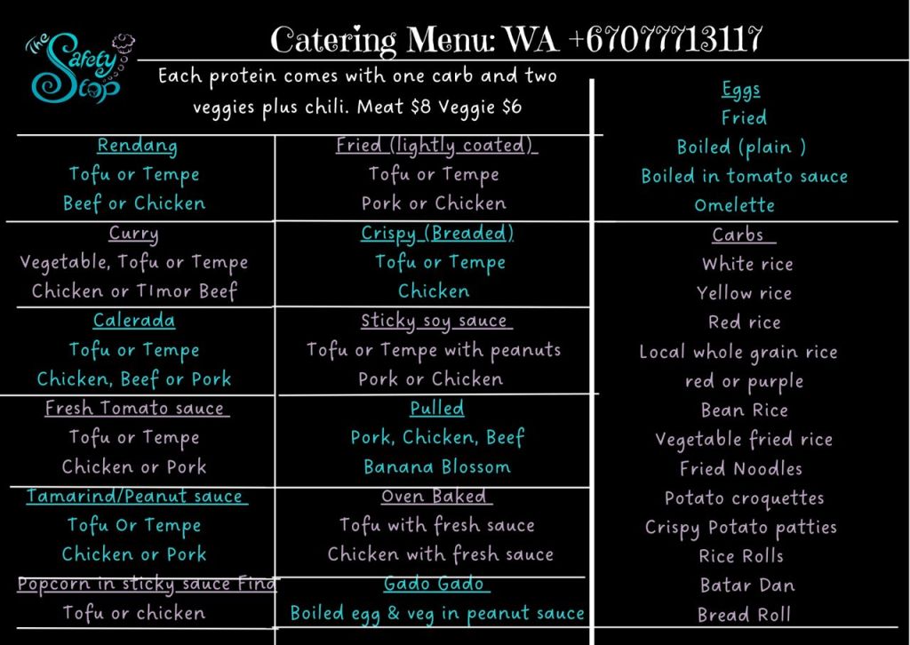- Luncboxes: Order by 2pm for next day (collect from 7-8:30am)