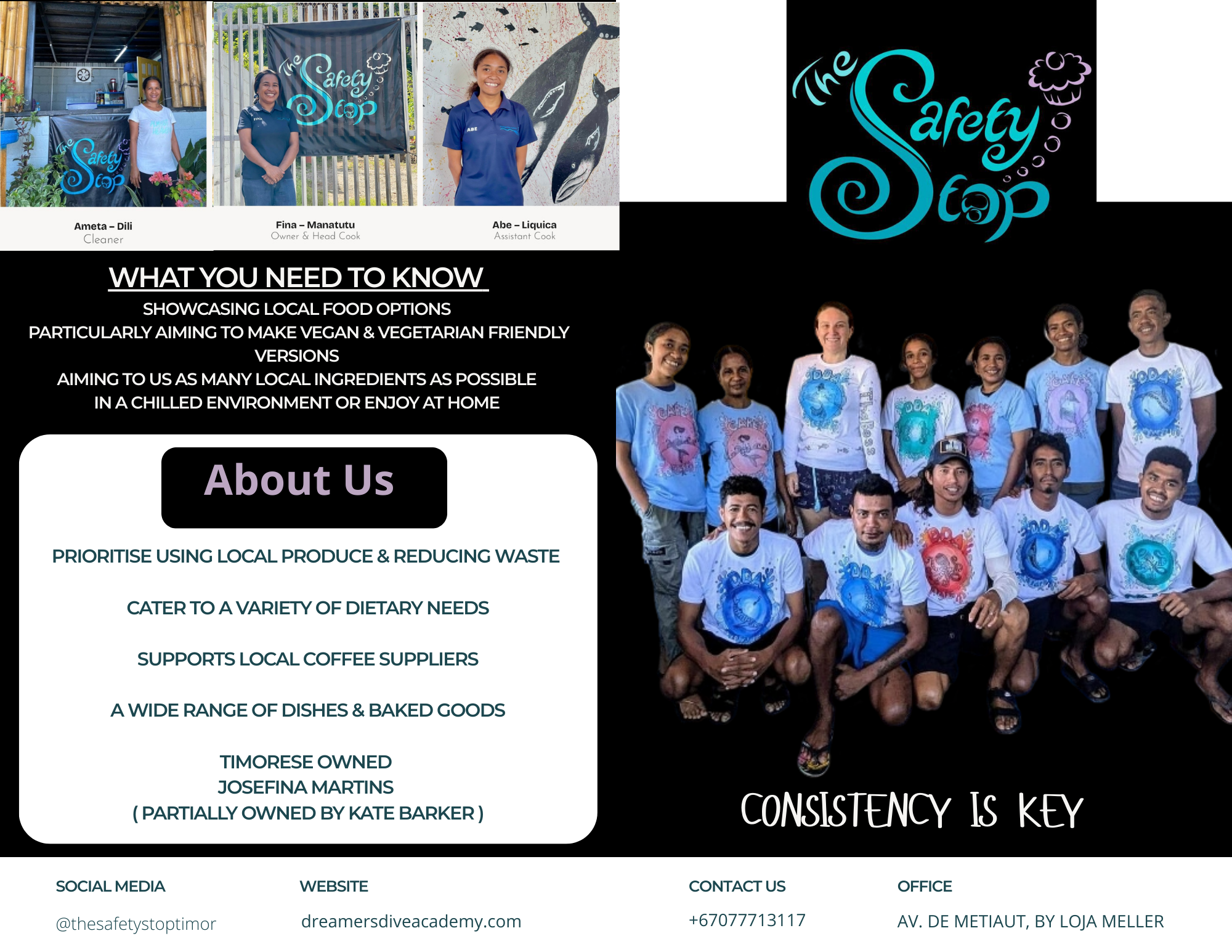 A natural in the kitchen, Fina has a gift for making everything she cooks just click. Creative and intuitive, she brings fresh life to traditional Timorese dishes and isn’t afraid to experiment. Over the past year, she’s also been mentoring other staff, passing on her knowledge with patience and enthusiasm. Hardworking, talented, and full of heart—the Safety Stop is lucky to have her.